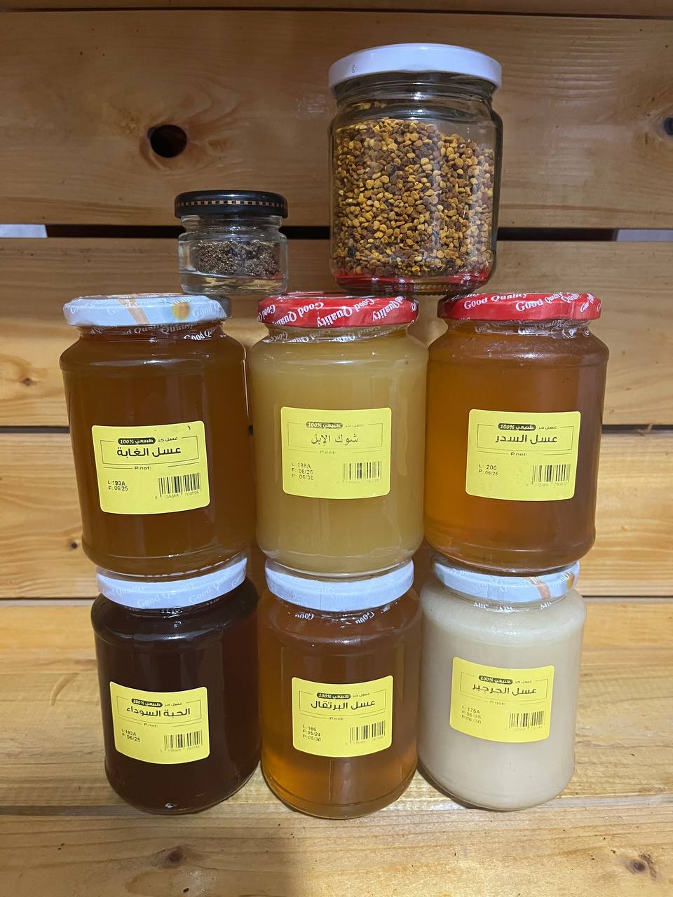 6 أنواع من العسل الحر الطبيعي، كل نوع في علبة 500غ (المجموع 3 كغ)